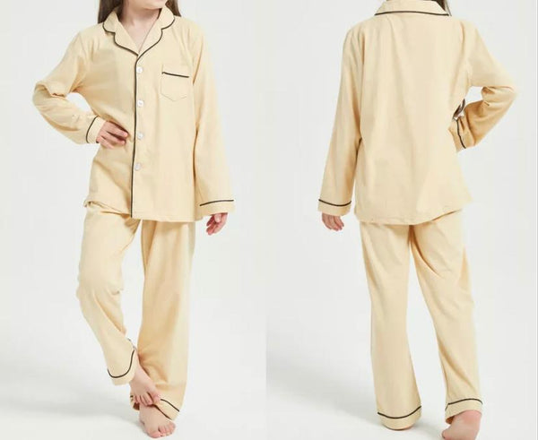 The Girls Cream Long Sleeve Button Pyjamas 3yrs-11yrs feature a sophisticated button-down style in ultra soft, cosy flannel. This golden cream pyjama set combines timeless elegance with premium comfort that both parents and children will love.