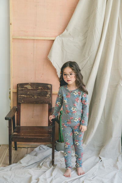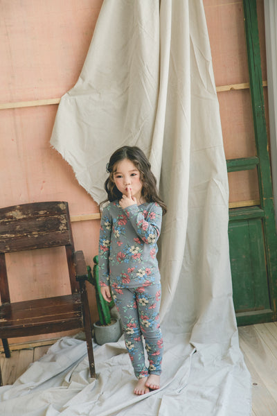 The Girls Grey Pyjamas UK - Vintage Floral PJs 18mths-9yrs feature a gorgeous vintage floral design in soft grey tones that creates an elegant, timeless look. Perfect for children who deserve the softest, most comfortable sleepwear with a touch of sophistication.